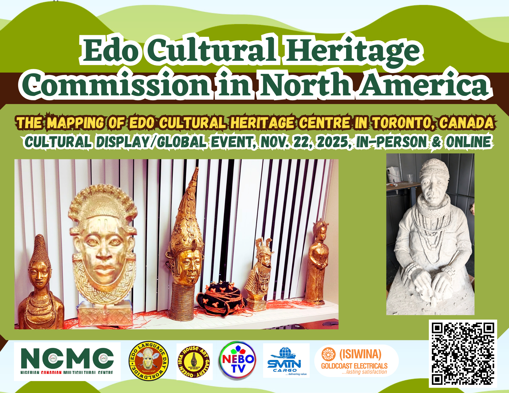 We are thrilled to announce our inaugural global event, scheduled to take place both online and in-person in Toronto on November 21-22, 2025. This event will unveil the proposal and plans for the Edo Cultural Heritage Centre in Toronto. The centre will feature an Edo-based art gallery (museum), offer workshops for Black youth and children in Canada, celebrate the annual Edo Language Day, facilitate exchange programs between Canada and Edo State, support Black artists and sculptors, and contribute to the art sector, among other activities.